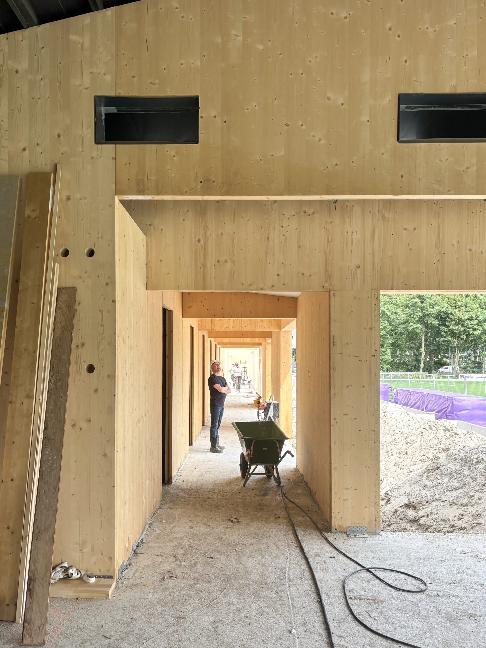 CLT / KLHSportpark Steeds Hooger – RotterdamPlaats:RotterdamMateriaal:KLHProject:JM24-057Ontwerp:Alex Jager – JagerJanssen architecten BNARealisatie:week mei 2025Foto’sAlex Jager 3
